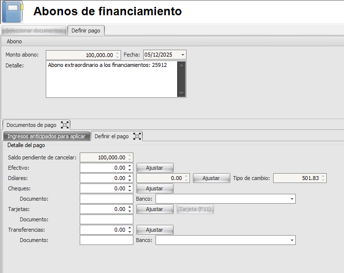 Cómo realizar un abono extraordinario a un financiamiento desde facturación.