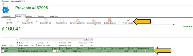 En Preventas también se puede indicar que la venta será es un pedido especial, asegurando que no afecte los promedios de consumo desde su etapa inicial.