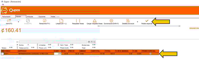 Al momento de facturar, Qupos permite clasificar la venta como pedido especial, incluso si no se definió en pasos anteriores.