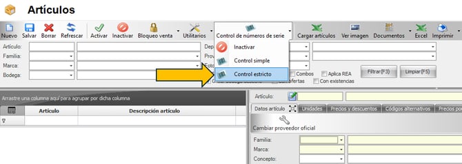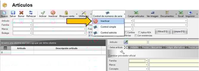 El sistema no solicita número de serie para el manejo del artículo.