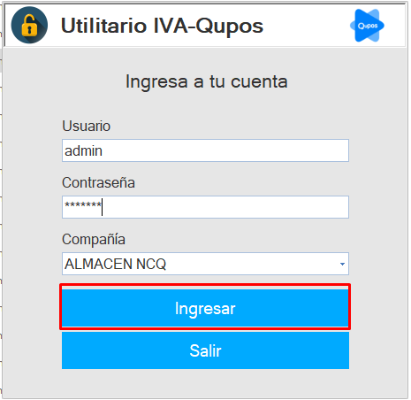 1. Ingresar al Utilitario Qupos, digite su usuario y contraseña y clic en "Ingresar".